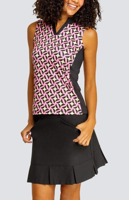 The Atara sleeveless golf top is par for the course, featuring an open V-funnel neck and side inserts. Made with our wrinkle-resistant, moisture-wicking Performance Jersey fabric, it will continue to be a staple in your wardrobe wash after wash. And the UPF 50+ protective technology that is built-in to the fabric will give you peace of mind as you play under the sun’s harmful rays.