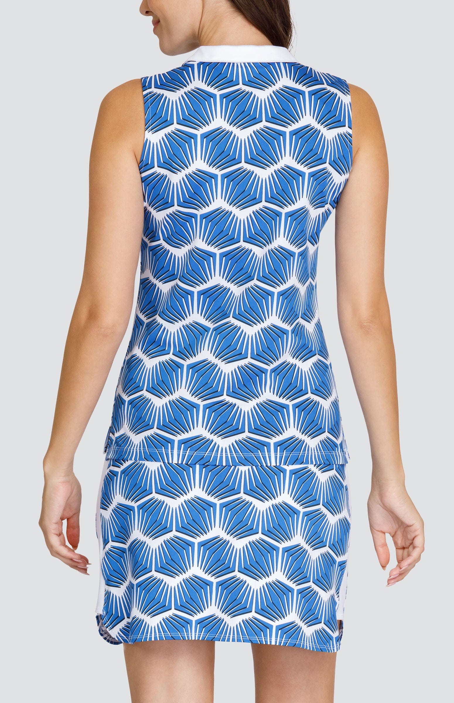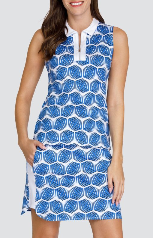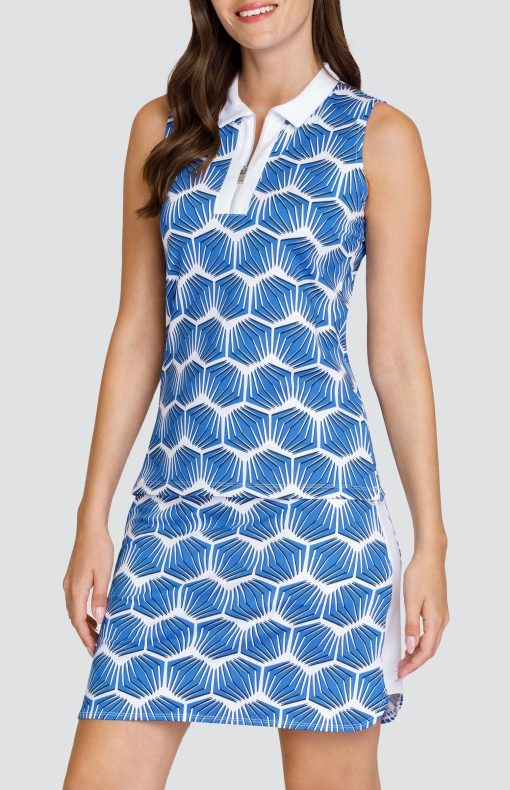 From our Palm Blooms collection. The sleeveless Kyrah golf top brings traditional looks to new fashion heights with a classic quarter zip foldover collar. Side vents bring a breath of fresh air while our moisture-wicking Performance Jersey fabric keeps you cool and dry on the golf course.