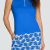 From our Palm Blooms collection. The sleeveless Kyrah golf top brings traditional looks to new fashion heights with a classic quarter zip foldover collar. Side vents bring a breath of fresh air while our moisture-wicking Performance Jersey fabric keeps you cool and dry on the golf course.