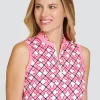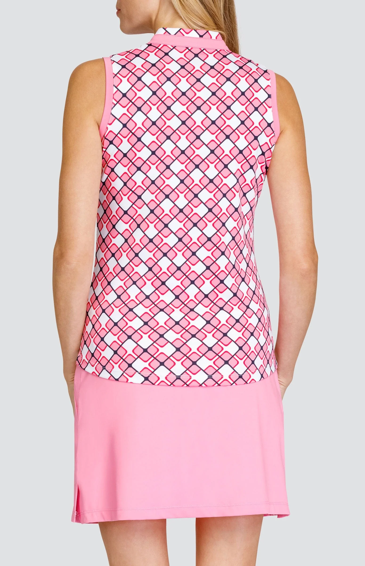From our Kismet Empress collection. The quarter-zip sleeveless Ravali Top features a curved hemline and a novelty collar with Camelia Pink armhole inserts. Our moisture-wicking Performance Jersey with built-in UPF 50+ protection will keep you cool, dry, and comfortable without needing to worry about the sun’s harmful rays.